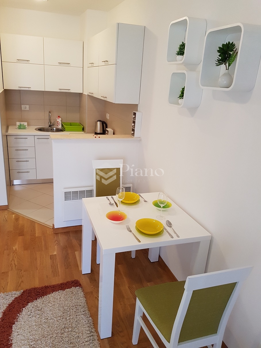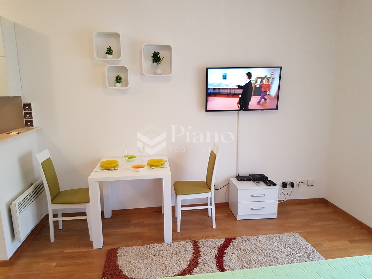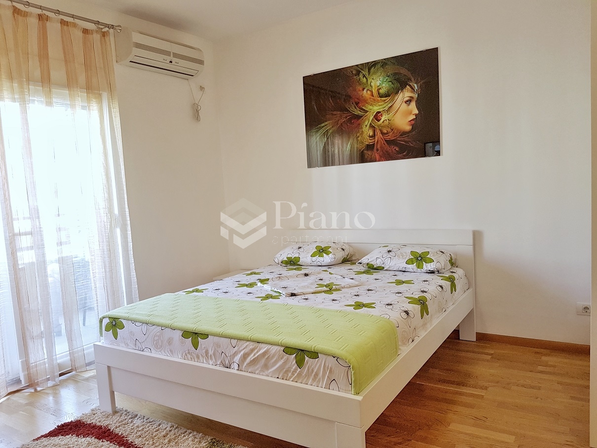Apartman je namješten kao hotelska soba, a sam namještaj i cio enterijer odiše vrhunskim kvalitetom. Apartman je opremljen tako da gosti imaju komforan boravak bilo da je trajanja par ili desetak dana. Bijeli krevet 160x200 i noćni stočići napravljeni su od punog drveta, veliki ugradni plakar sa ogledalom, dok je kuhinja kompletno opremljena i spremna za sve kulinarske prohtjeve.. Apartman posjeduje klima uređaj, LCD TV 40”, kablovsku  i WiFi internet, peglu, fen i naravno čistu posteljinu sa peškirima.